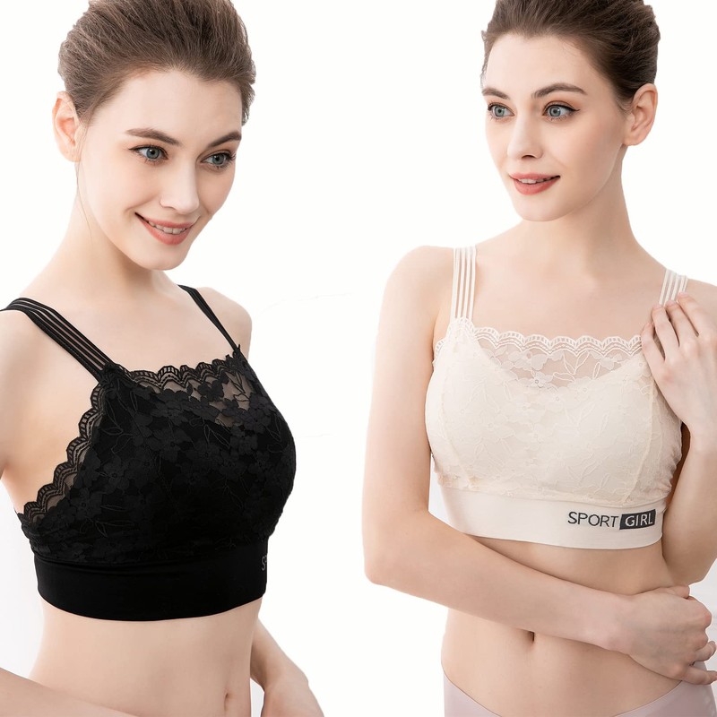 Lace Bralettes for Women Wire Free Push-up Sports Bra,2 Pcs Bandeau Bra for Everyday Wear, Exercise and Offers Back Support (as1, Alpha, x_l, Regular, Regular, Black and White)