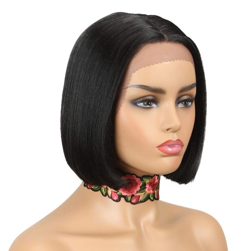 Lace Front BOB Wigs for Women NOBLE Realistic Synthetic Black Wig 10 inches Middle Part Blunt Cut Bob Wig