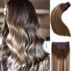 Lace Human Hair Extensions Clip ins,Soft Black to Ash Brown with Bleach Blonde Mix Human Hair Extensions 100 Gram Full Head 4PCS Double Weft Remy Human Hair Extensions for Women 18 inch