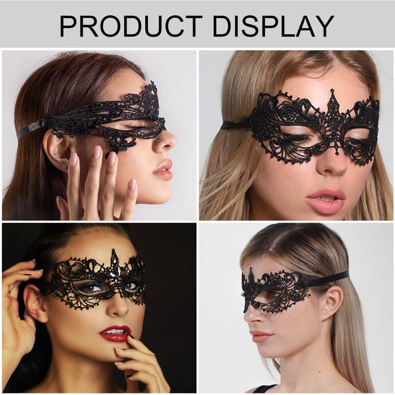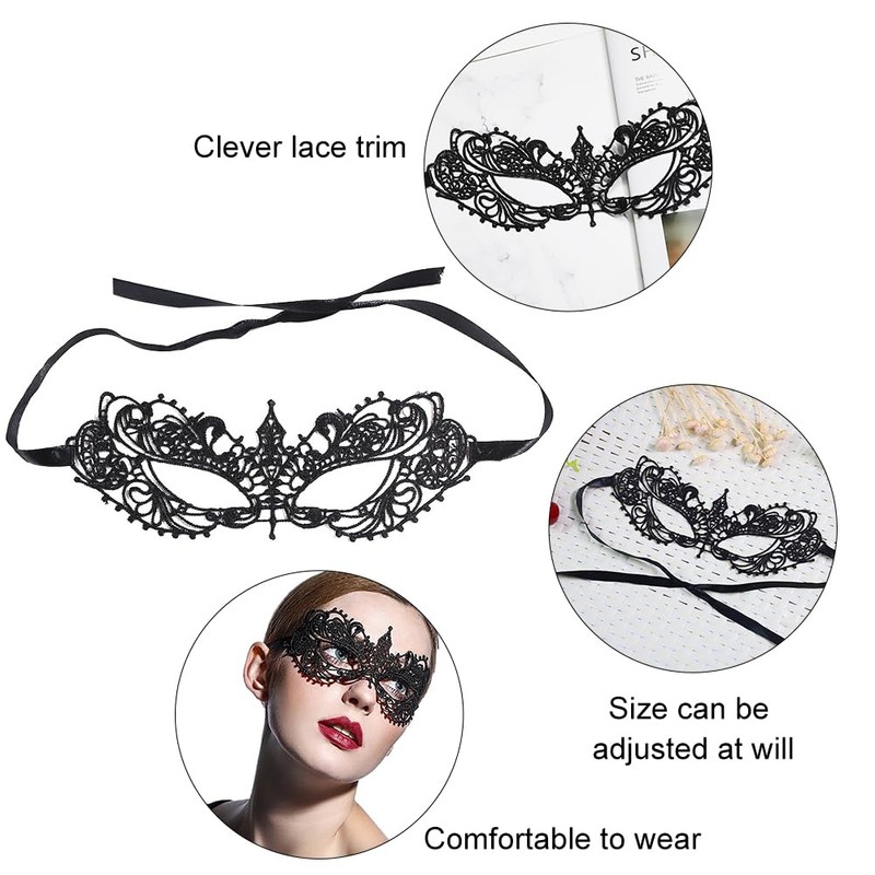 - Black eye mask: these lace masks are suitable for many activities and occasions, such as carnival, masquerade parties, cosplay, parties, games and so on.