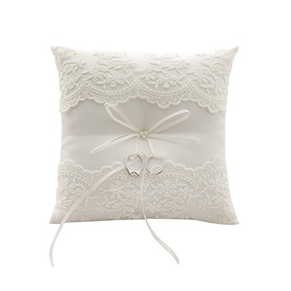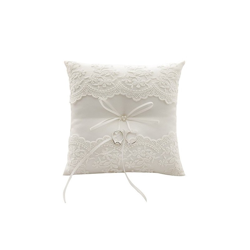 Lace Wedding Ring Pillow Pearl Cushion Bearer 8.26 Inch