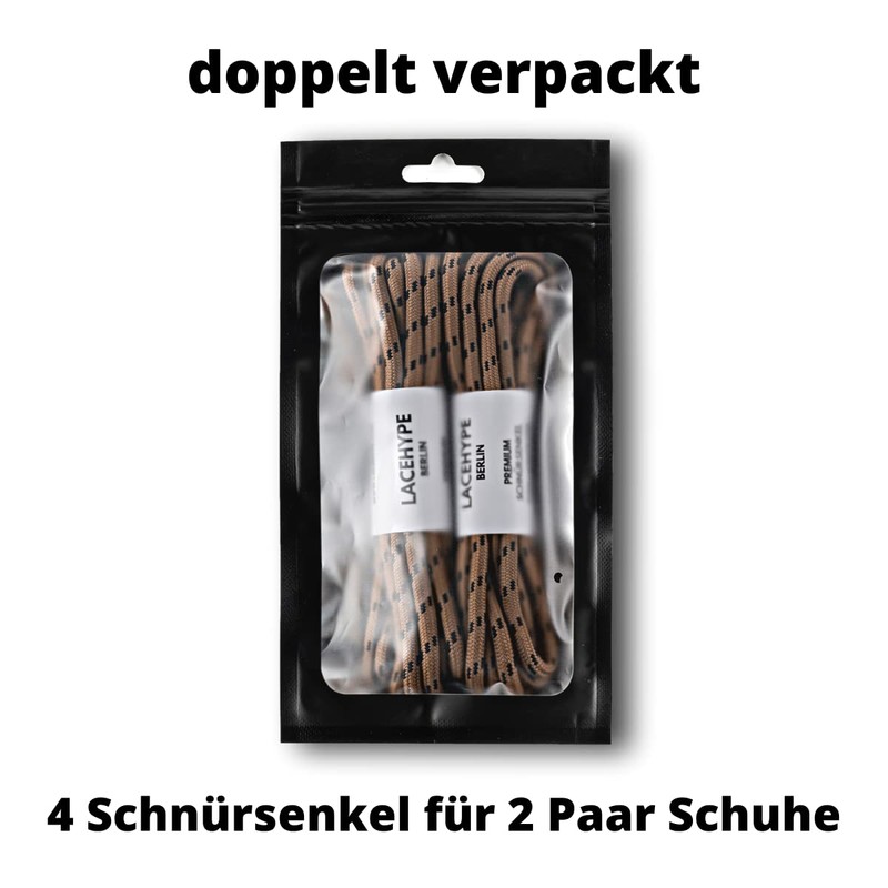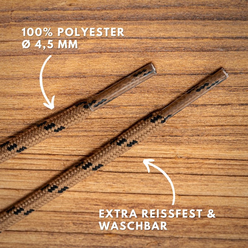 LaceHype 2 Pairs - Premium Round Shoelaces [Diameter 4.5 mm] Polyester for Work Shoes, Boots, Outdoor Shoes and Sports Shoes, Tear-Resistant Shoe Laces, brown/black