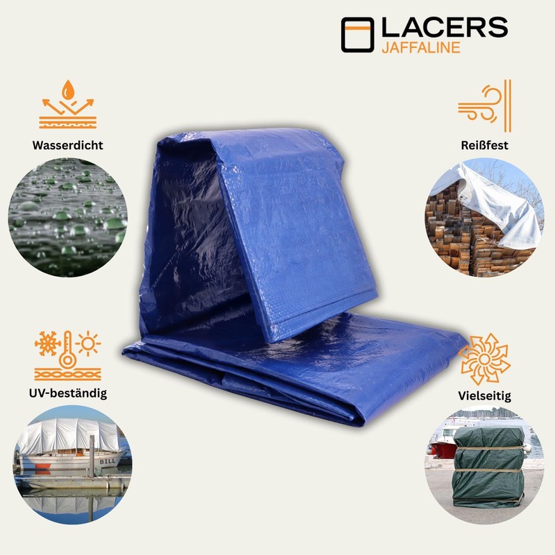 - Easy to use: the Lacers JaffaLine fabric tarpaulin is easy to attach and offers optimal handling thanks to the edge reinforcement and eyelets. Ideal for garden, camping, construction sites and more.