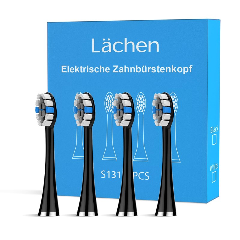 Lächen Replacement Brush Head, Fits All Smile Electric Toothbrushes, Pack of 4 (C-Black)