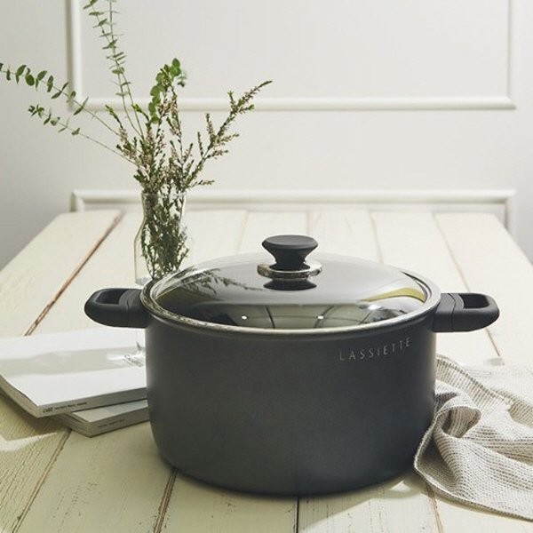 - texture: Body - Aluminum alloy, fluorine coating / Lid - Tempered glass (overflow prevention patent) / Handle - Stainless steel, Bakelite (soft touch handle)