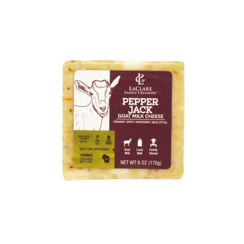 - Semi-soft, creamy goat milk, pepper jack cheese