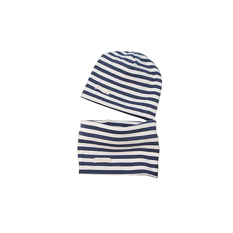 LACOFIA Baby Boys Beanie Hat and Collar Scarf Set Kids Super Soft Cotton Cap Infant Knit Hats and Bandana Scarves 2 Pack Navyblue Stripe 7 Months to 2 Year M