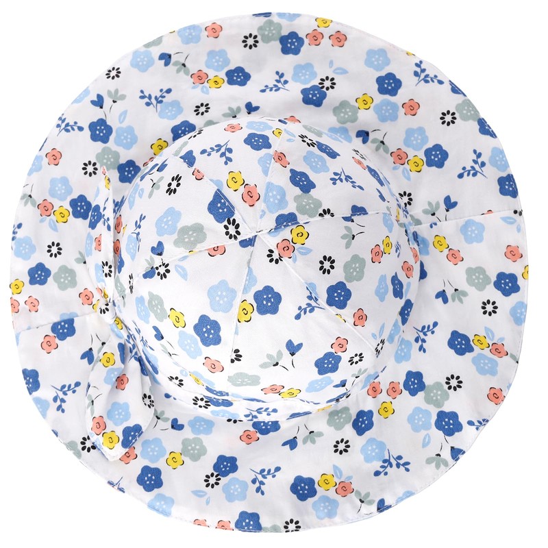 LACOFIA Baby Girls Sun Hat UPF 50+ UV Protection Toddler Cotton Beach Hat Infant Wide Brim Summer Visor Cap with Adjustable Chin Strap White Flowers 6-18 Months