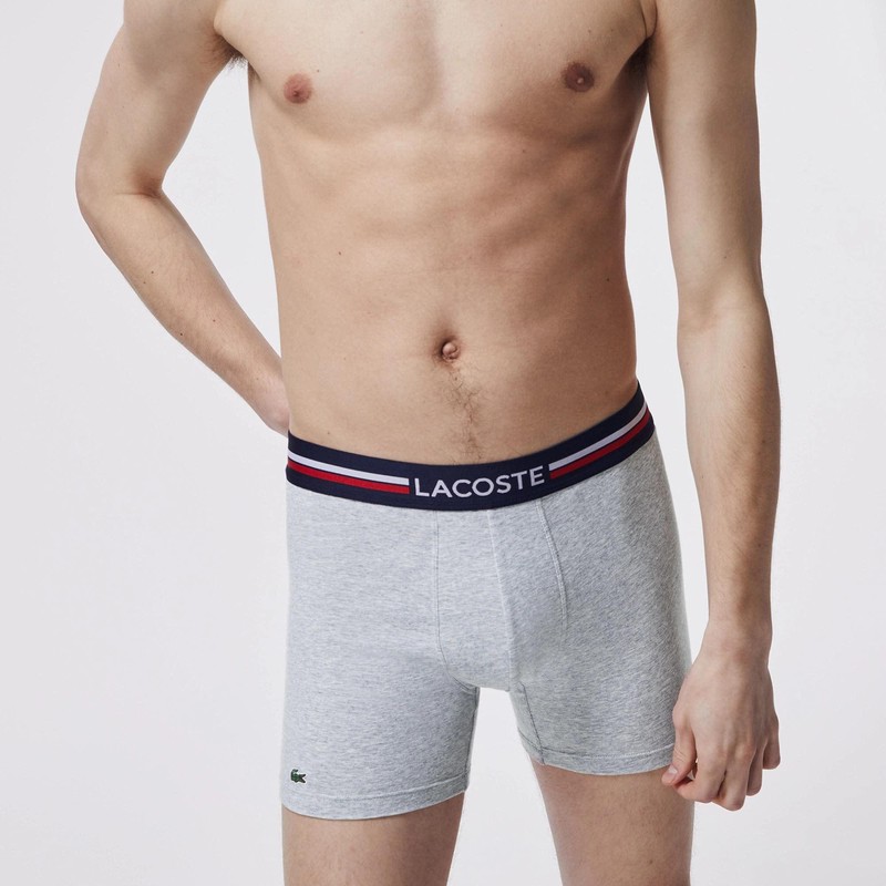 Lacoste Men’s Cotton Stretch Big Croc Print Trunks, 3-pack