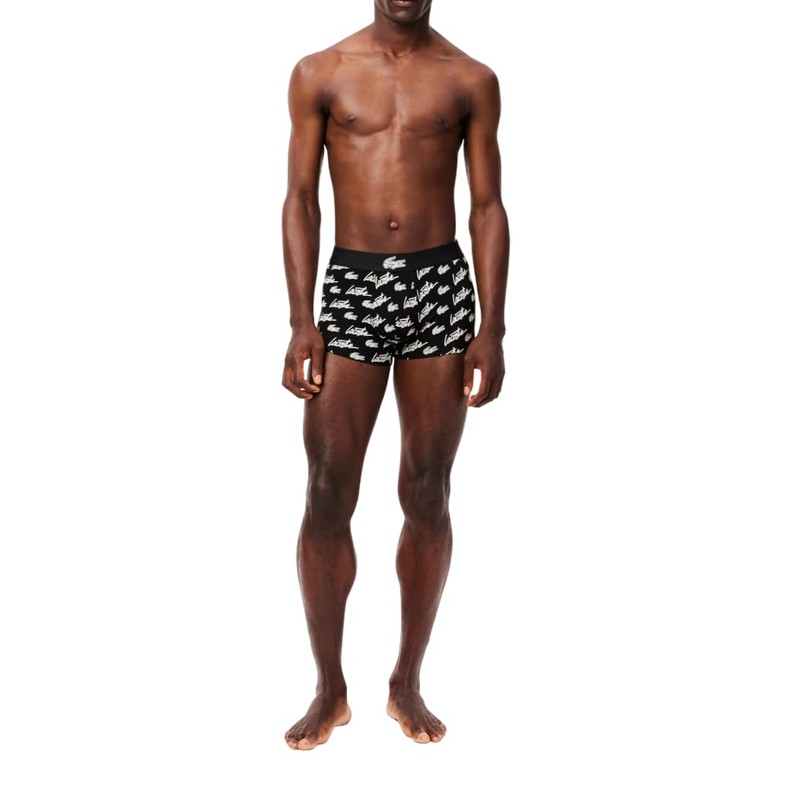 - LACOSTE'S SIGNATURE: Diagonal allover Lacoste print with jacquard waistband and contrasted croc on middle front.