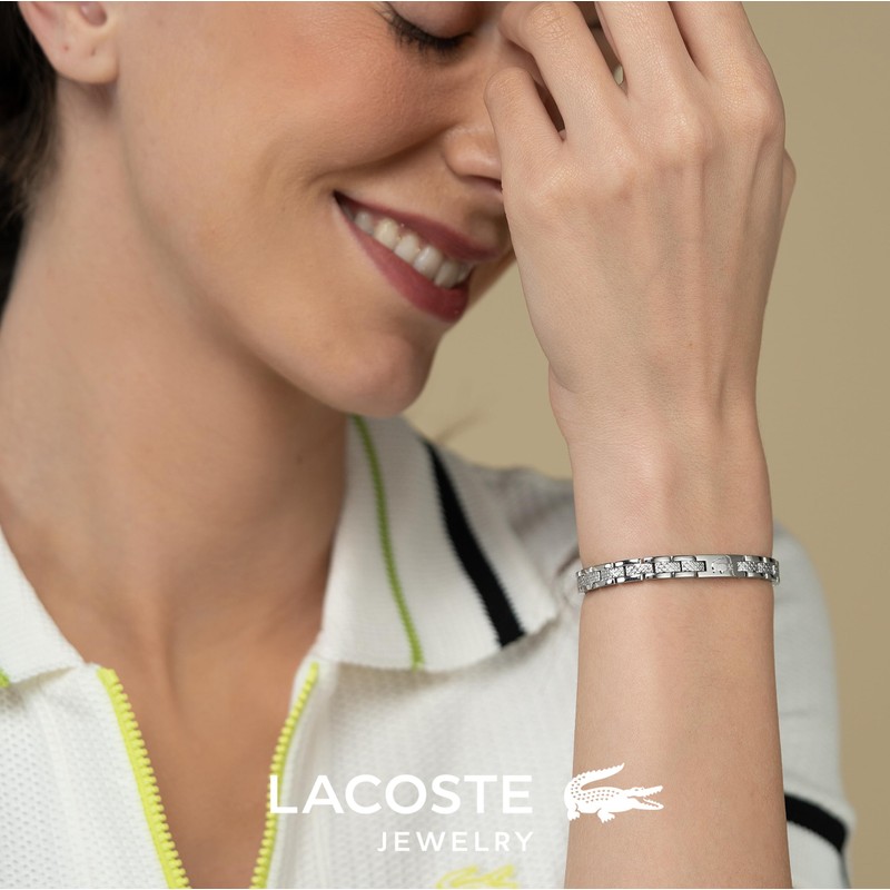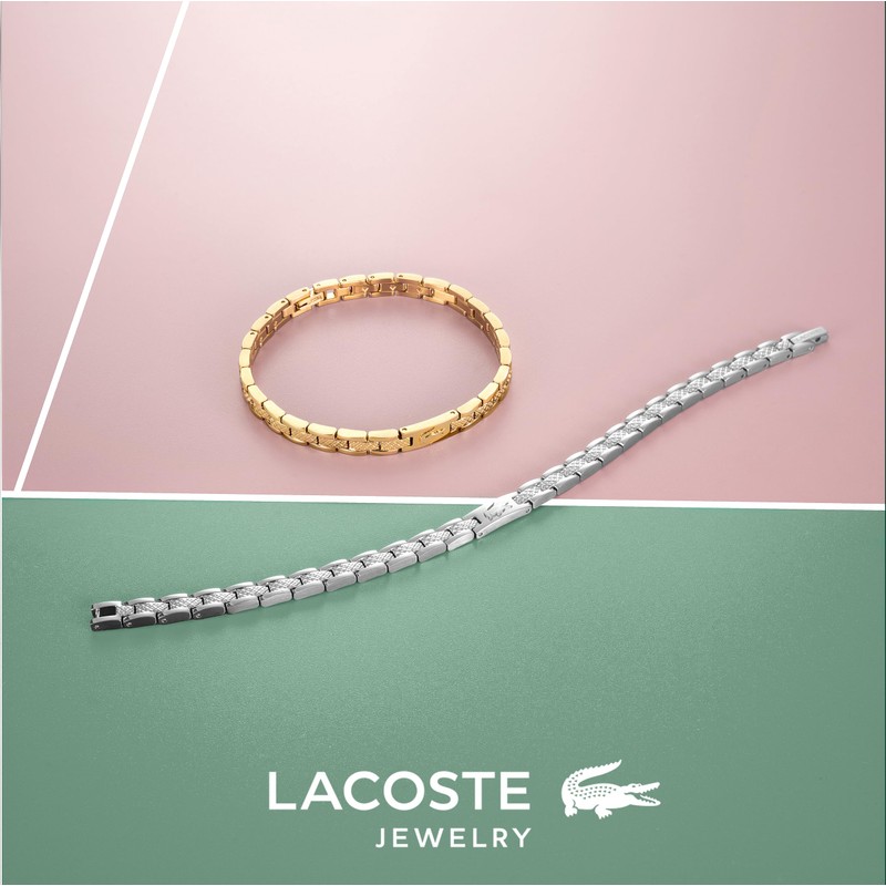 • Iconic Lacoste Design Inspired by the brand’s iconic watch bracelets, it combines engraved petit piqué details and polished outer links with brushed edges for a unique texture contrast.