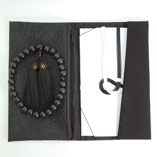 Lacquered Rosary, Kyoto Prayer Beads, Men's, Ebony, New Ebony, Can be used in all denominations (Fukusa Fukusa Set)
