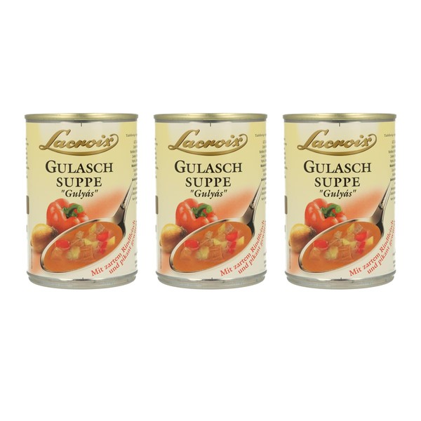 Ingredients: water, 10% cooked beef (beef, salt, starch), 9.7% onions, tomato paste, 3.9% red pepper, rapeseed oil, modified starch, wheat flour (gluten), salt, spices, sugar, wine brandy vinegar, garlic powder, dextrose, barley malt extract (Glututen, gluten, contains celery), thickener: guar gum, carob gum and xanthan gum.