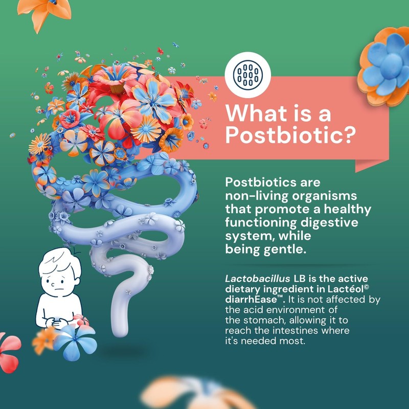 - Safe and drug free postbiotic: Lactéol diarrhEase Kids contains Lactobacillus LB which helps to restore the balance of good microorganisms in the gut following occasional diarrhea and naturally helps to flush out unfriendly microorganisms.