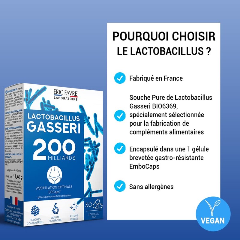 - Maximum simulation: Lactobacillus gasseri is a type of lactic acid bacteria from the family of Lactobacillaceae. It is part of the microbiota of the mouth, vaginal and intestinal mucosa. Developed in our French laboratory Eric Favre, the formula is highly assimilable.