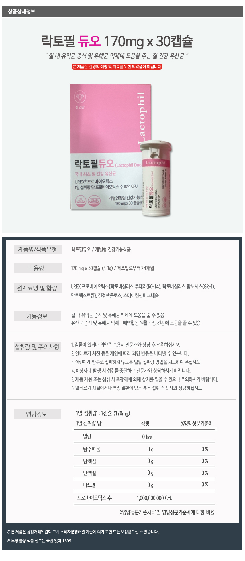 락토필 듀오 170mg x 30캡슐