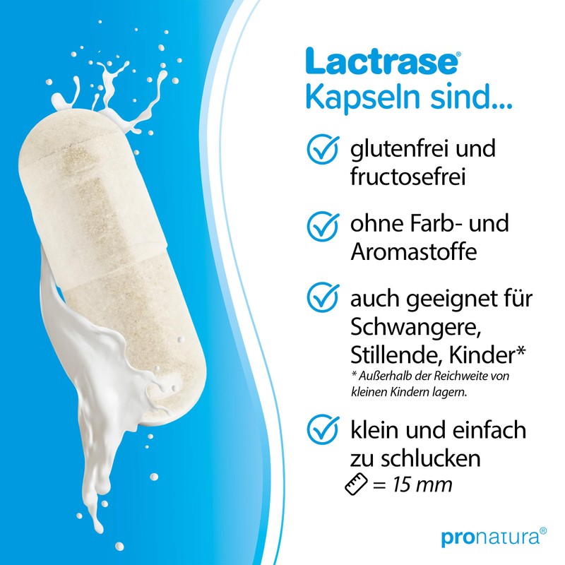 - Effect: The enzyme lactase contained in lactrase splits lactose into its easy-to-use ingredients glucose and galactose. Our lactose intolerance capsules are also suitable for pregnant women, breastfeeding women and children.