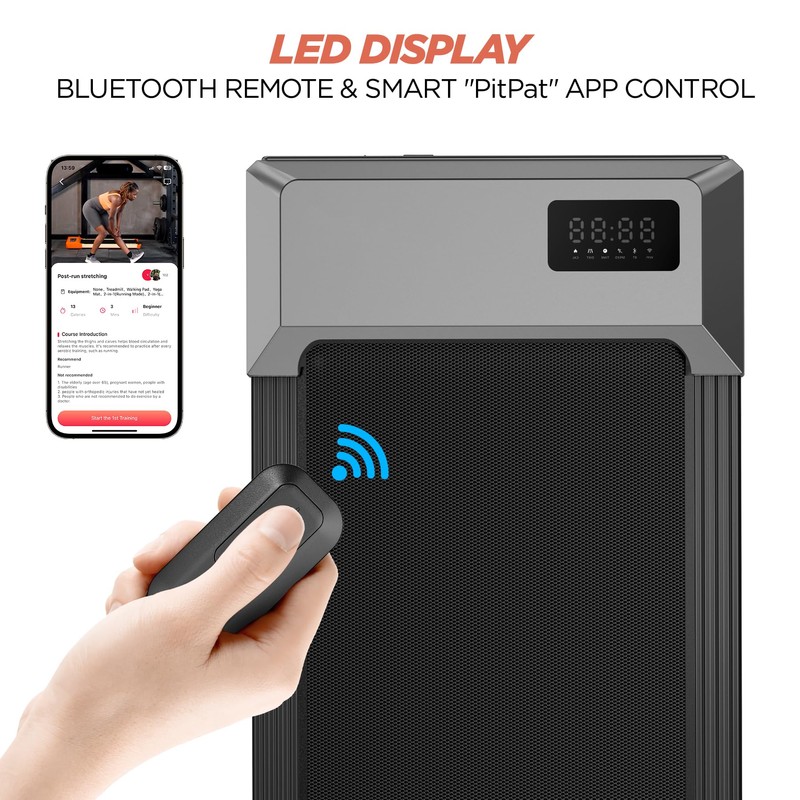- 【𝐏𝐢𝐭𝐏𝐚𝐭 𝐅𝐢𝐭𝐧𝐞𝐬𝐬 𝐒𝐨𝐟𝐭𝐰𝐚𝐫𝐞】Easily and precisely control your treadmill with Pitpat. A wealth of features are at your disposal: a variety of popular races to watch online, and a variety of immersive running scenarios. It also comes with free training sessions to improve your running ability, the system analyzes and generates exercise reports for you after exercise, and monitors your real-time heart rate while you run and synchronizes it to the data center.