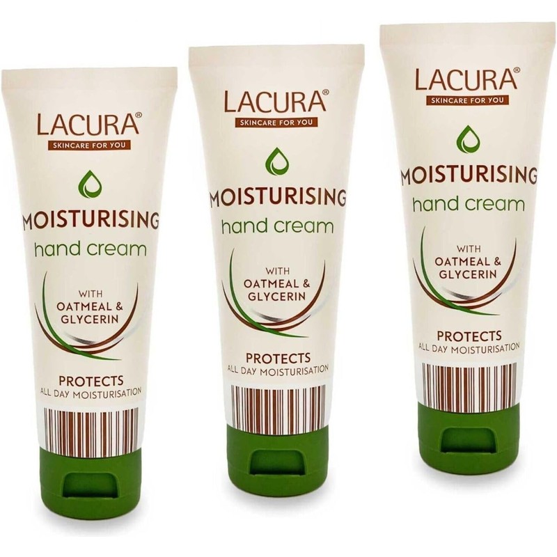 Lacura Moisturising Hand Cream | With Oatmeal & Glycerin | Intense Hydration for Soft Hands | Long-Lasting Moisture | 75mL (Pack of 3)