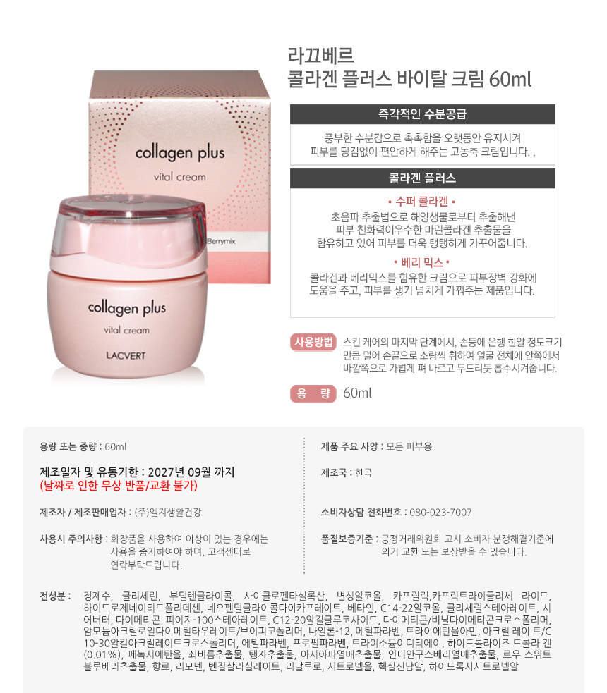 라끄베르 콜라겐 플러스 바이탈 크림 60ml