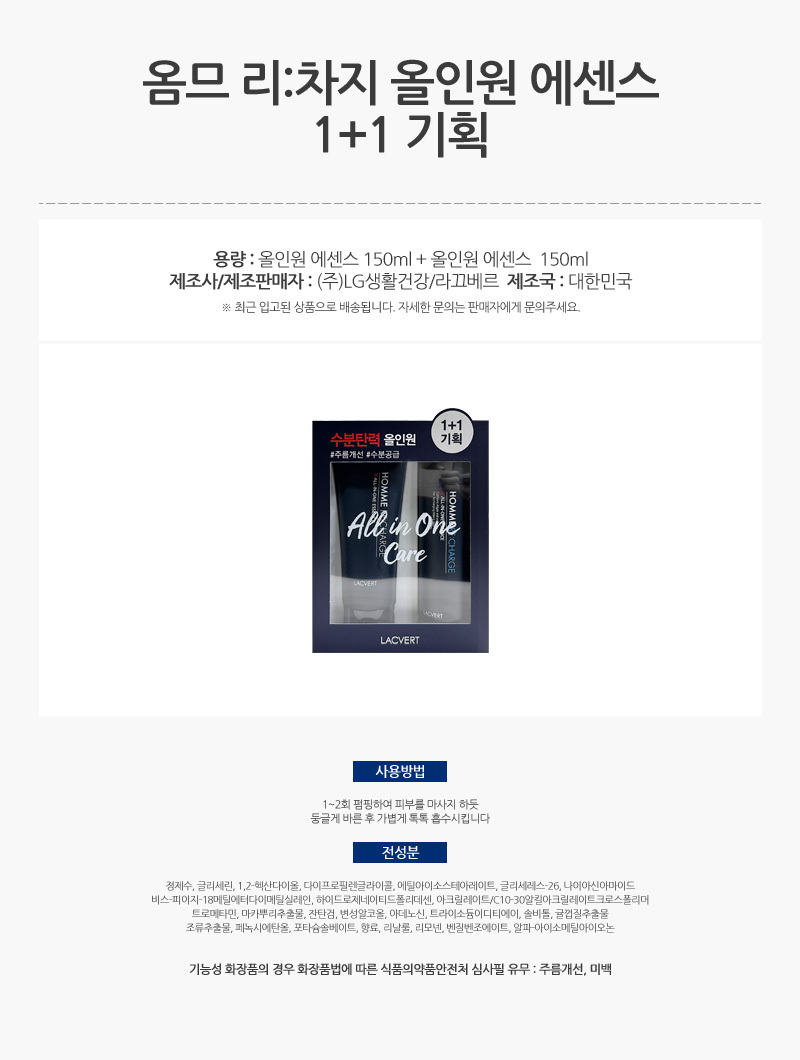 Lacvert Homme Recharge All-in-One Essence 1+1 Promotion / 라끄베르 옴므 리차지 올인원 에센스 1+1 기획
