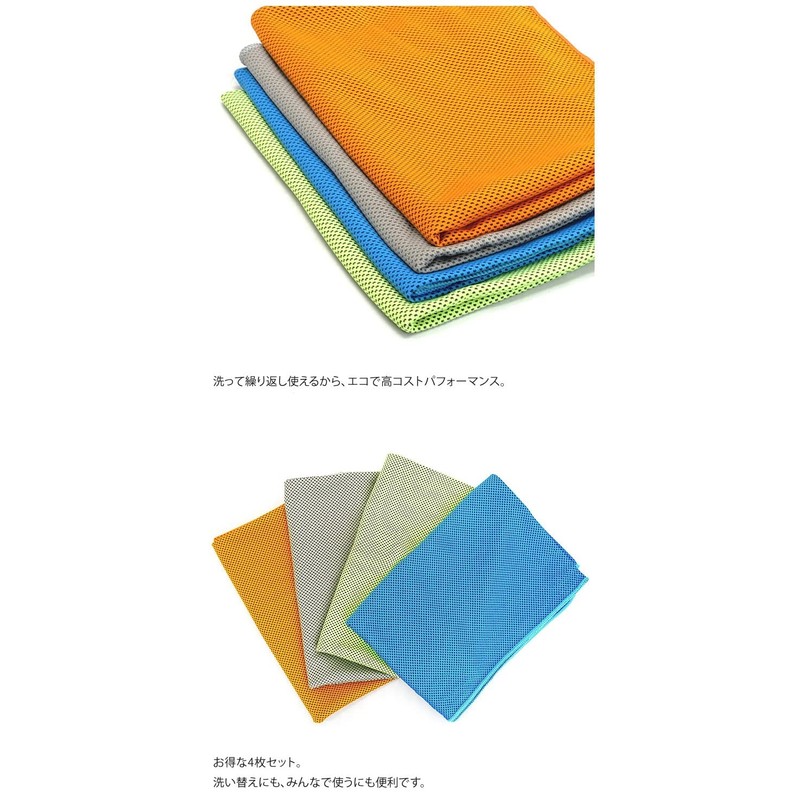 Lad Weather Cool Towel, Set of 4, Cooling Towel, Water Absorbent, Quick Drying, Cool, Cool, Towel, Heat Stroke Prevention
