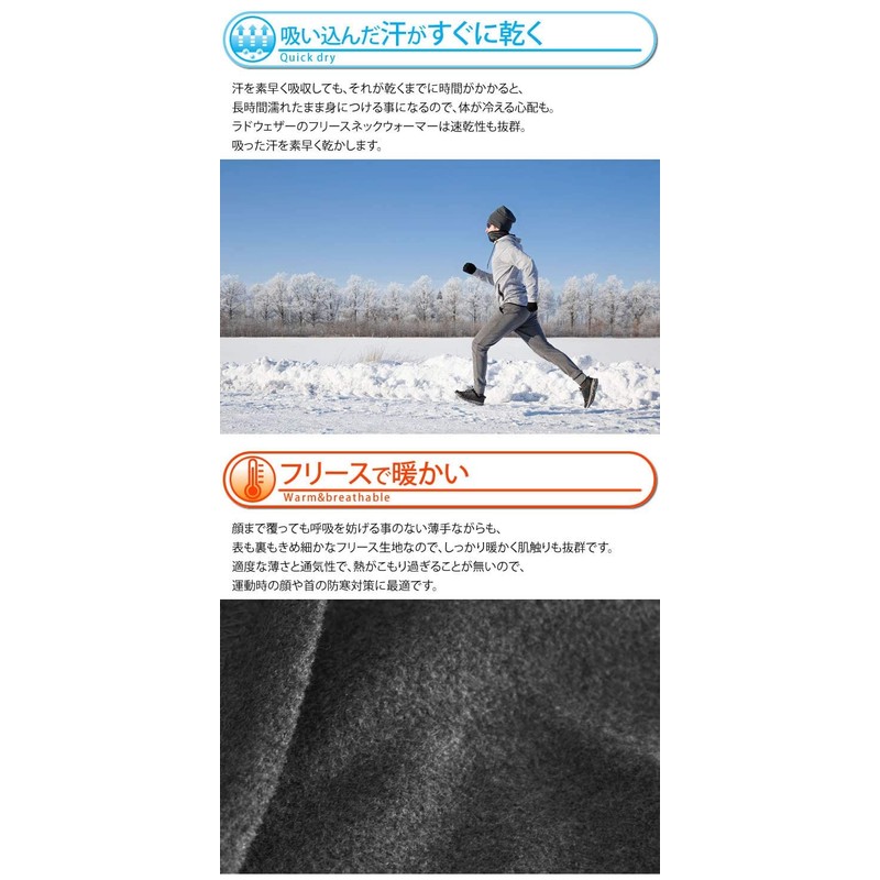 - Fleece Warm: The fleece fabric is thin and does not interfere with breathing even if you cover your face, but the front and back is made of fine fleece fabric, so it is warm and comfortable to the touch. Moderate thinness and breathability, so it does not overheat, making it ideal for keeping your face and neck cold during exercise
