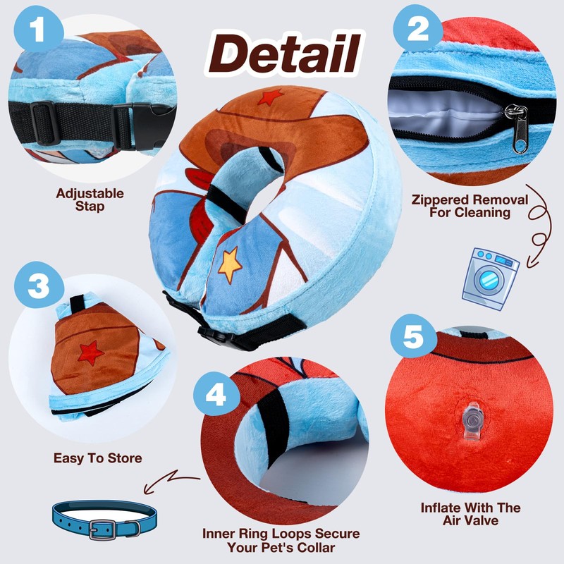 - Easy to Clean - Ladadee inflatable dog cone collarsare removable, making them easier to clean than traditional cones, Wipe with a damp cloth or machine wash to keep them fresh and clean.