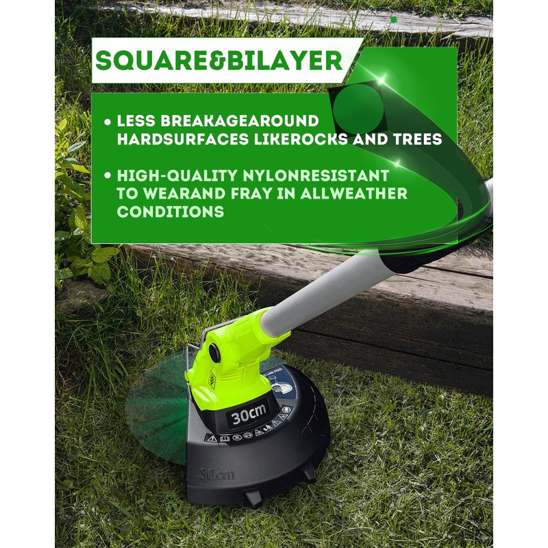 • Excellent Quality:Our trimmer line, crafted from sturdy nylon, withstands hard surfaces without breaking. Its enhanced material minimizes knots and wear, facilitating smoother, straighter cuts with less effort than traditional trimmer lines