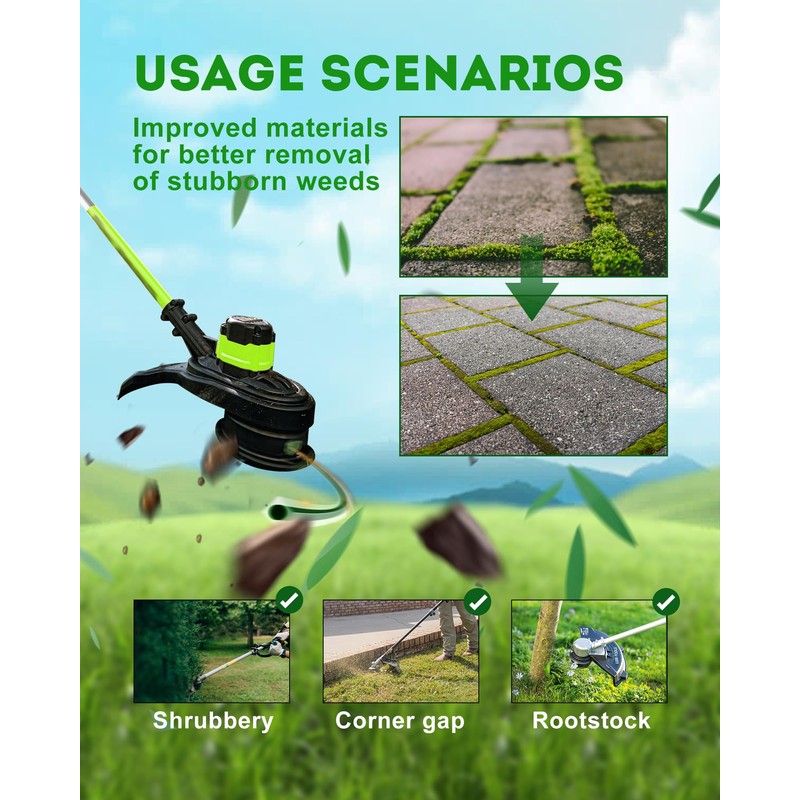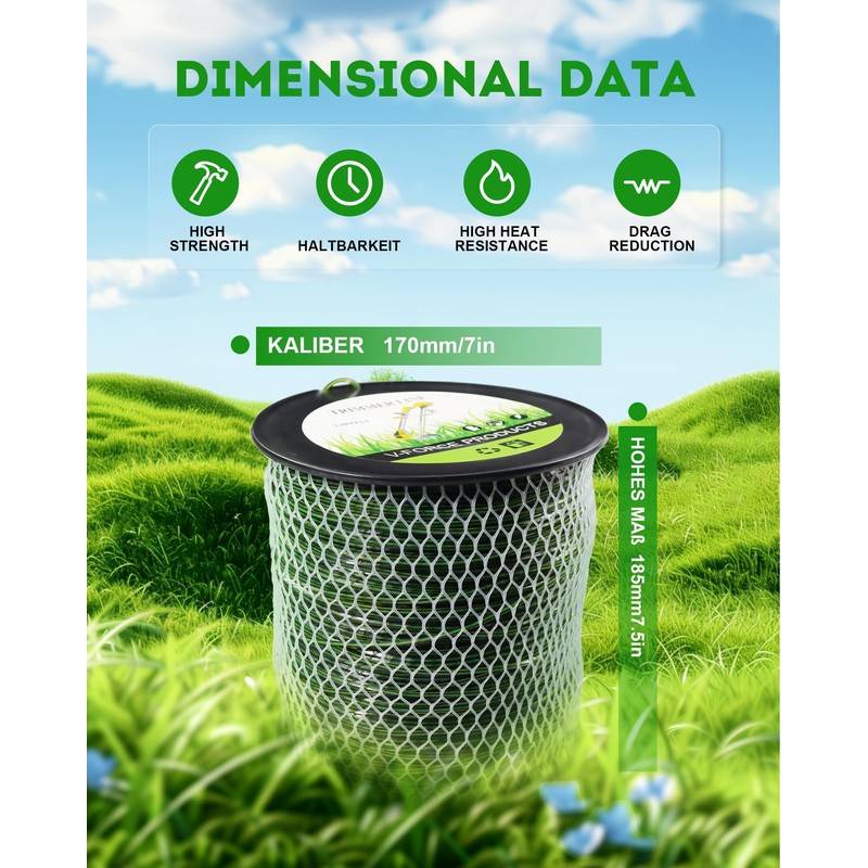 • Suggestion:Please soak the trimmer line in water for 12-24 hours before use. This will make the trimmer line stronger, less prone to breakage and better trimming effect!
