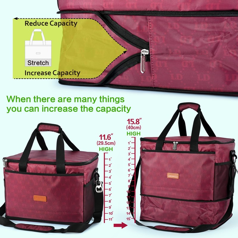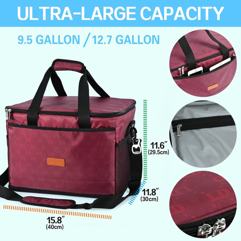 - 【Large capacity】Original size: 11.6''Hx15.8''Lx11.8''W, the capacity reaches 9.5 gallons. Expanded size: 15.8''Hx15.8''Lx11.8''W, capacity reaches 12.7 gallons. It can help you carry a lot of food, and it is an indispensable insulating storage bag when you gather with family and friends.