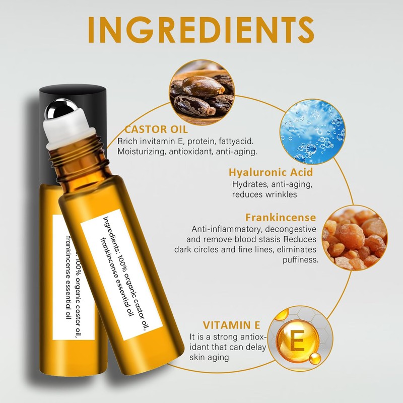 - Dual Rollerball Applicators:This set includes 2 rollerball castor oil applicators with frankincense for targeting under-eye bags,dark circles and wrinkles.
