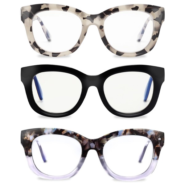 - What You Get :3 pack of blue light reading glasses ,readers soft pouch ,microfiber cleaning cloth. Store in every room of the house or to share with a friend, spouse or partner,you'll have a pair handy wherever you are.