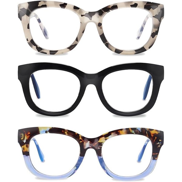 - Classic Large Frame Glasses:Reading glasses carefully crafted for people who love fashion. Based on the oversized fashionable frame, it is paired with a collision of just the right exterior color. You can easily pair these women's reading glasses with your wardrobe. No matter what your face shape is, the large frame can effectively modify your face shape, making it perfect for reading, working, or enjoying digital entertainment in the office, at parties, at home, or in bed.
