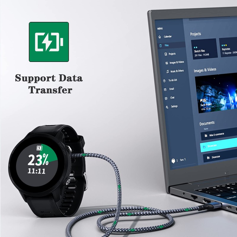- Strapazierfähiges Uhrenladekabel: Dieses Ladekabel für Garmin fenix 5s Uhr besteht aus hochwertigem geflochtenem Nylonkabel, verstärktem Steckerdesign, hat mehr als 5000 Biegebärentests bestanden und ist langlebig für den täglichen Gebrauch. Unser Uhren Ladekabel für Garmin-Uhren hat eine Gesamtlänge von 1,8 m und ist damit länger als andere vergleichbare Kabel, um den Ladeanschluss Ihrer Garmin-Uhr zu erreichen, was die Bewegung und flexible Verwendung des Ladekabels erleichtert.