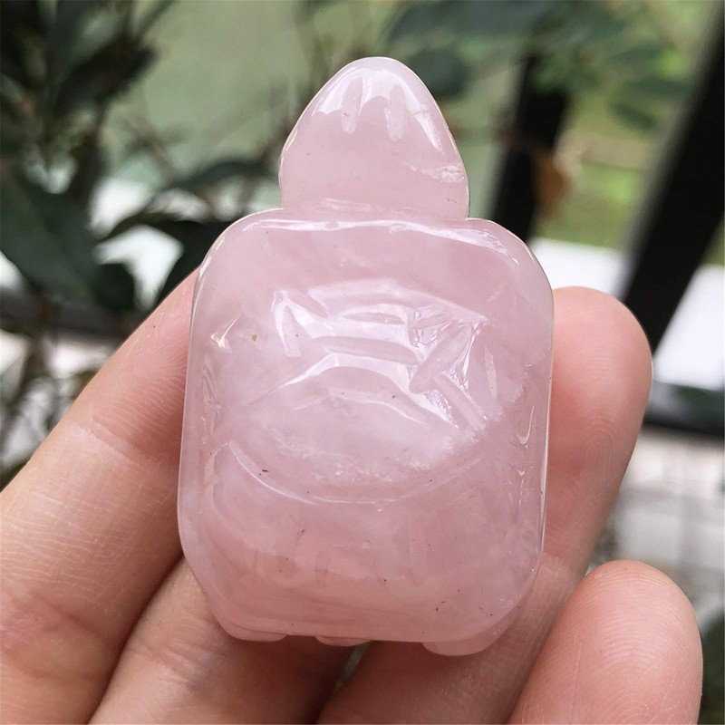 Ladeukoi Rose Quartz Stone Turtle Statue, Hand Carved Tortoise Animal Collectible Sculpture Fengshui Healing Crystal 1.5"(40mm)