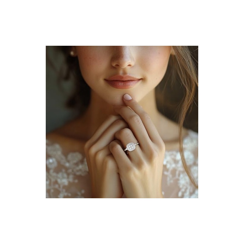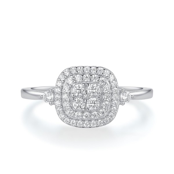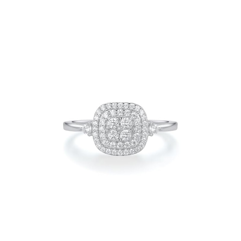 Ladies 925 Sterling Silver Brilliant Cut White Sapphire Engagement Cluster Ring (P)