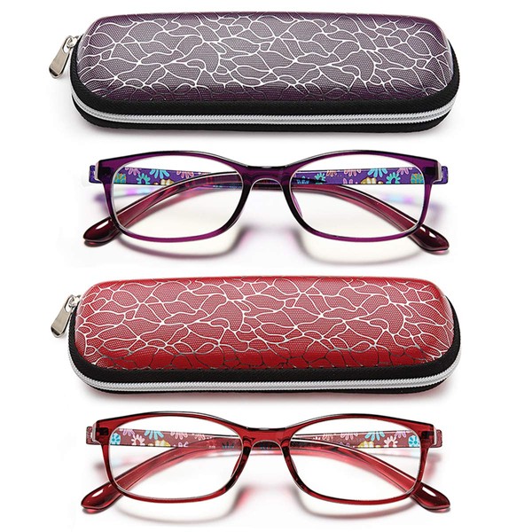 Ladies Blue Light Blocking Reading Glasses - 2 Pack Computer Readers for Womens +2.25 Blue Ray Eyeglasses and Hard Case