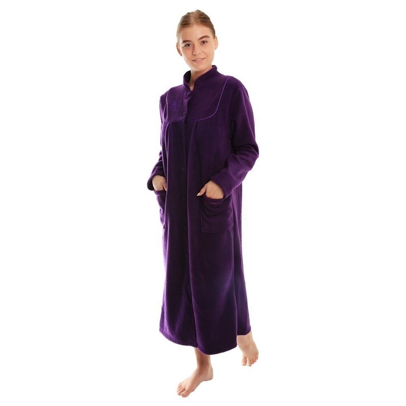 Ladies Button Front Soft Fleece Dressing Gown[18/20,Damson]