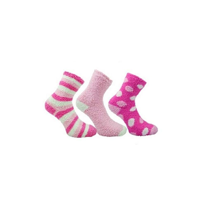 Ladies Fluffy Stripes & Polka Dot Design Co-Zee Thermal Socks (3 Pair Multi Pack)