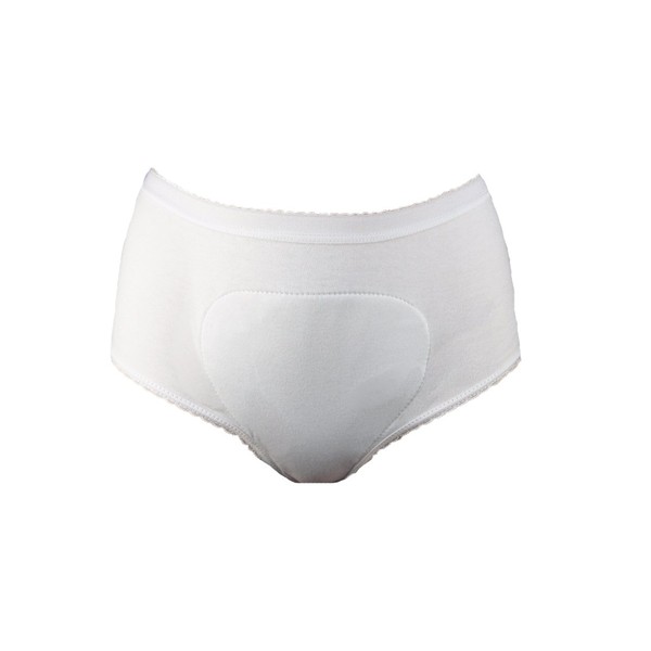 - 100% cotton brief with built-in absorbent pad with waterproof back.