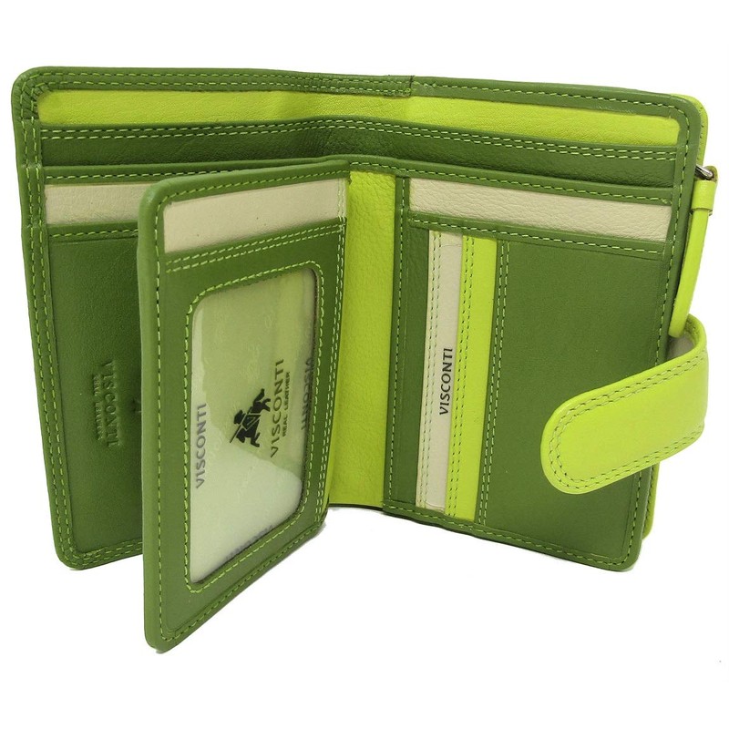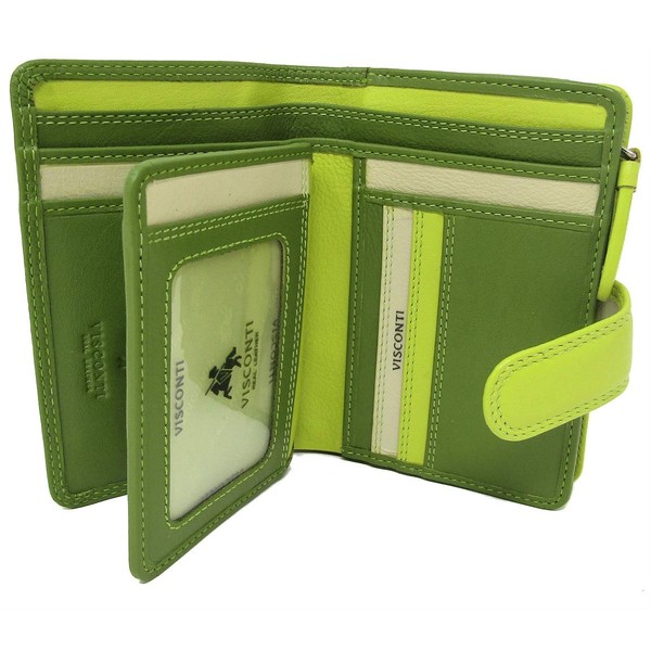Ladies Gorgeous Visconti Rainbow Leather Multi Compartment Purse Wallet RFID Secure RB51 (Lime Multi)