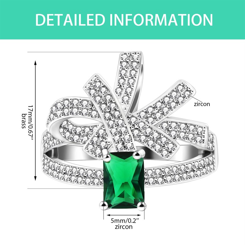 Ladies Green Crystal Rectangle Party Ring Oversize Bow Cubic Zirconia Jewelry for Loved Ones Anniversary Ring (Size7)