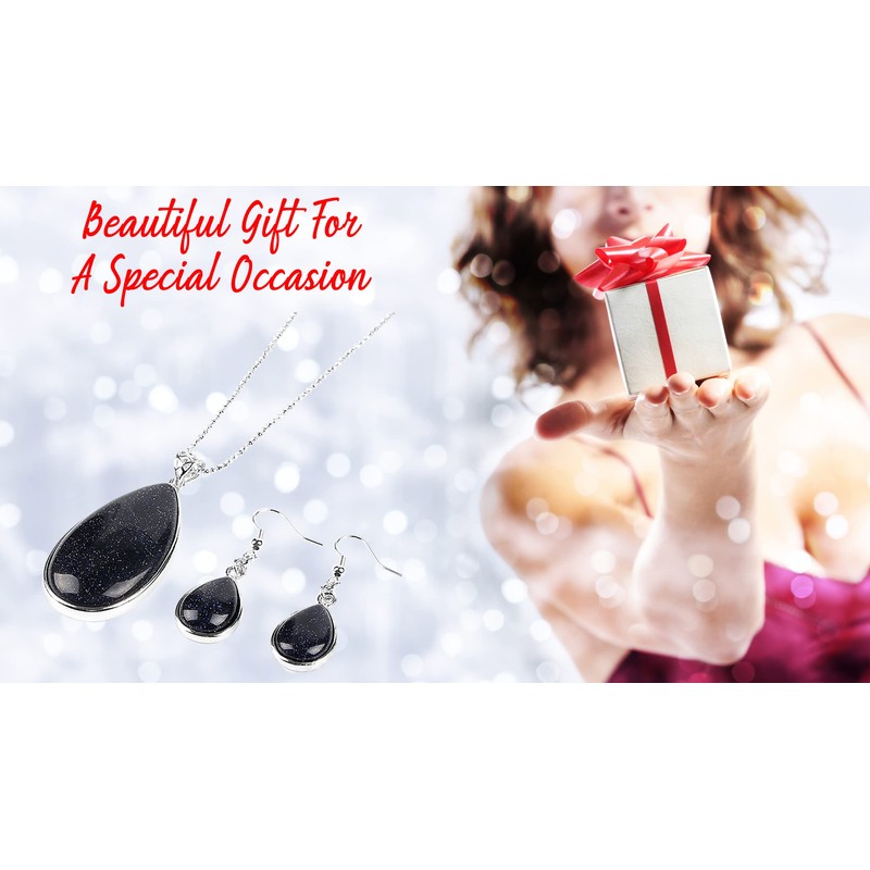 Ladies Matching Jewellery Set for Women - Teardrop Design Necklace Pendant & Drop Earrings - With Jewellery Gift Box (Blue Sandstone)