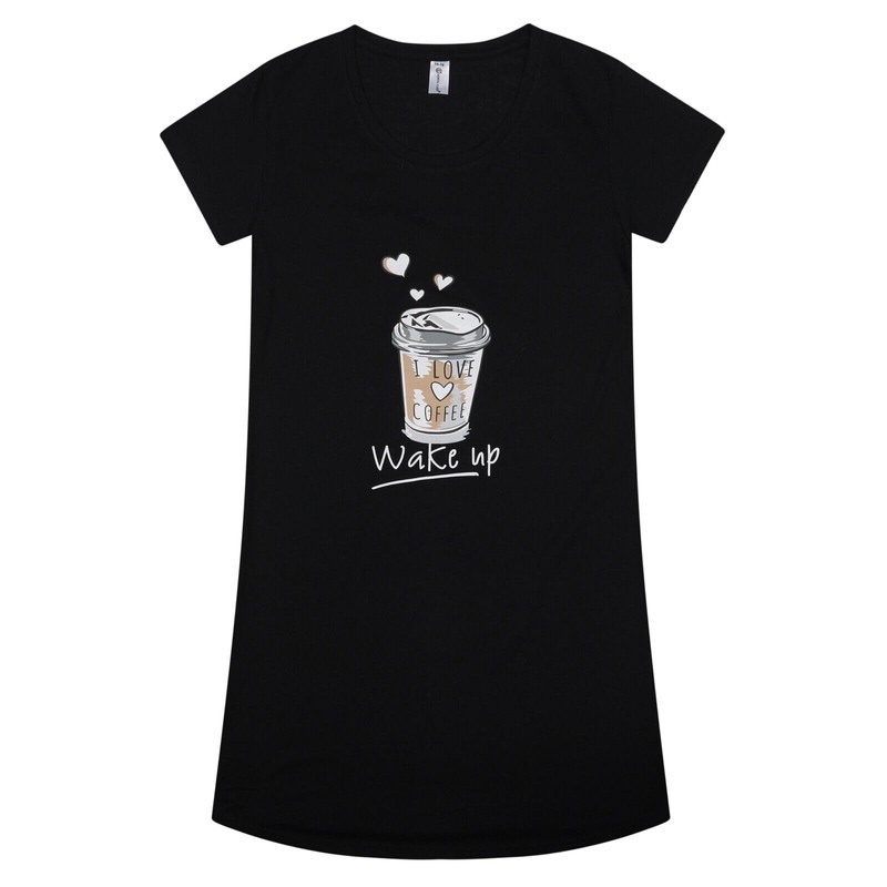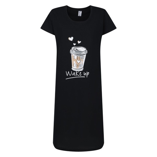 Ladies Nightie Short Sleeve Nightdress Fun Novelty Prints UK 10 to 24 Sleep Wear (Black, Coffee, 10-12)