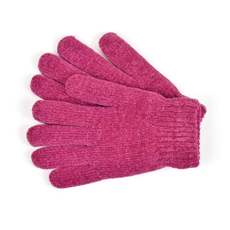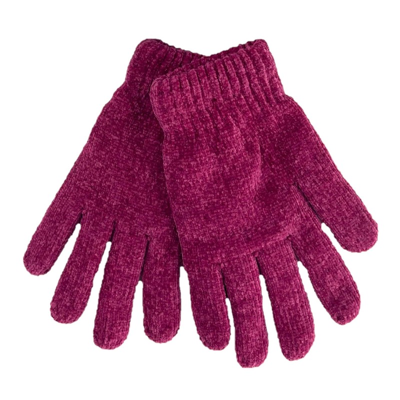 - Matching knitted five-finger chenille gloves with fleecey knitted lining – ribbed cuffs ensure gloves stay in place and help to keep wrists warm