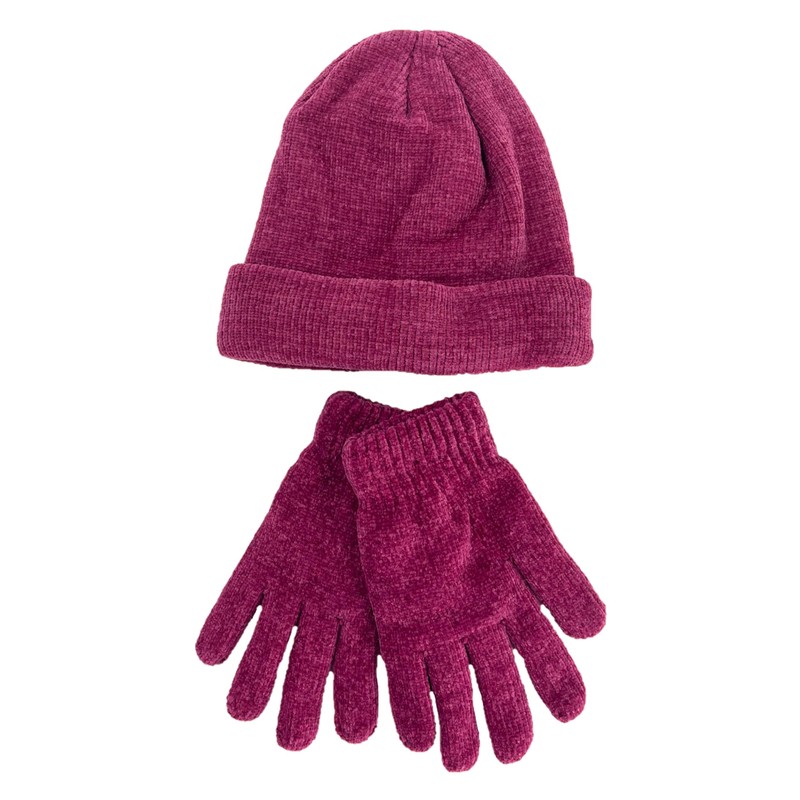 Ladies Soft Chenille Thermal-Lined Hat & Gloves Set - Berry