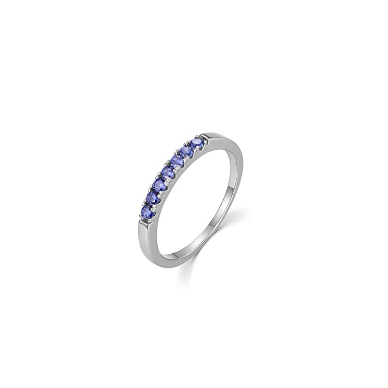 Ladies Solid 925 Silver Sterling 7 Stone Tanzanite Eternity Engagement Ring (J)