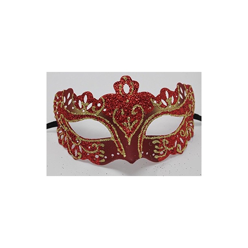LADIES SPARKLING RED AND GOLD RIALTO VENETIAN MASQUERADE CARNIVAL PARTY EYE MASK