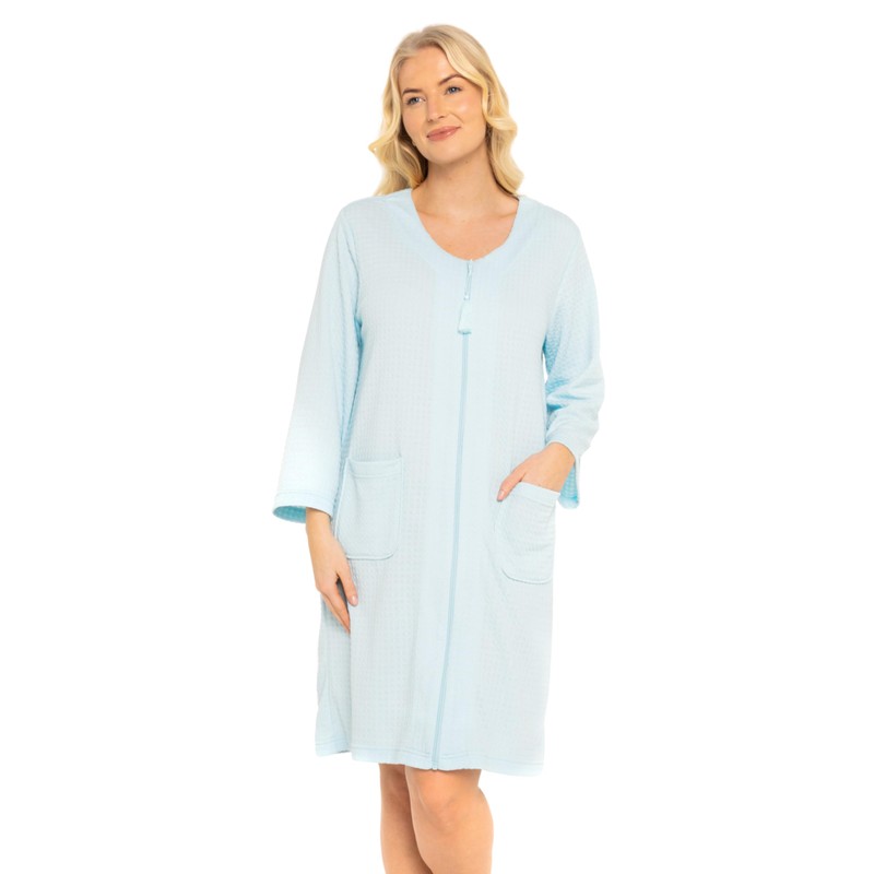 Ladies Super Soft Waffle Jersey Zip Front Dressing Gown, mint